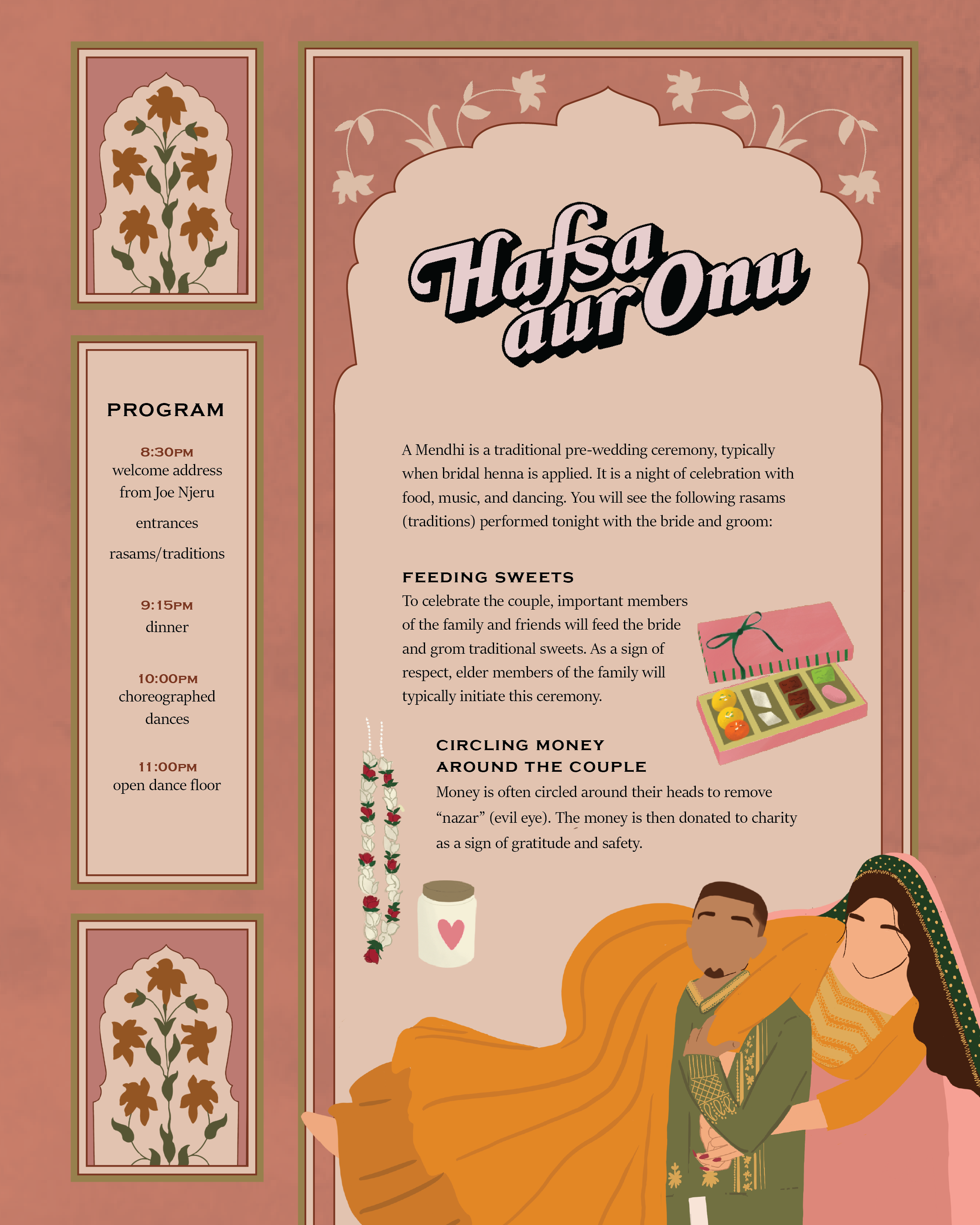 Custom illustrative designs for weddings since 2015. Some highlights below displaying knowledge of layout design and illustration style per day-of “brand”.
